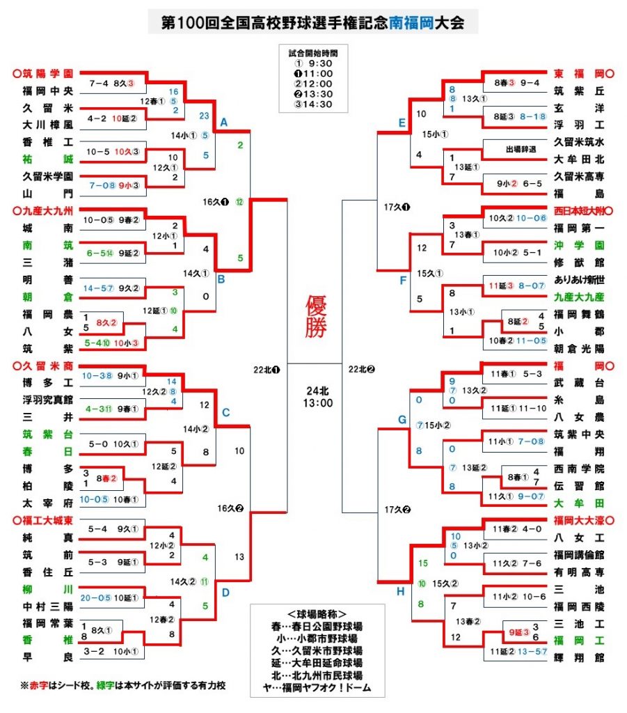 ▽久留米(準々決勝)東福岡―沖学園/大牟田―福岡大大濠