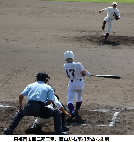 両校の投手がピリッとせず、あわせて15四死球・21安打が飛び交う乱戦となったが、最後は東福岡が辛うじて逃げ切った。